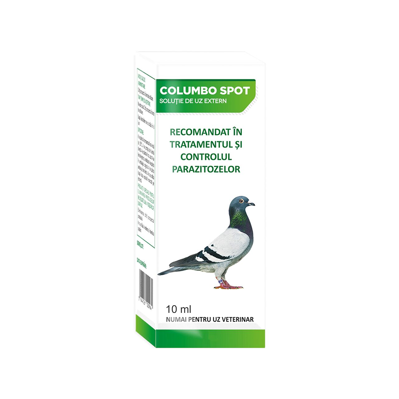 Păsările se vor vitaminiza înainte și după aplicarea COLUMBO SPOT-ului. După administrare se interzice îmbăierea păsărilor pentru un timp de minim 6 ore. Din cantitatea de 5 ml COLUMBO SPOT se pot trata 110 porumbei sau 220 păsări de colivie.