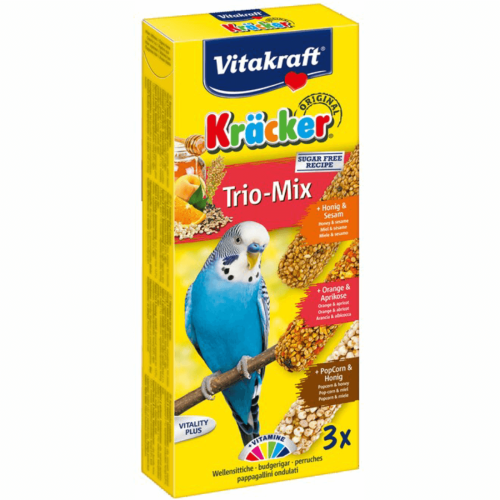 Batoane pentru perusi Vitakraft Kracker Trio Miere/Portocala/Popcorn 80 g