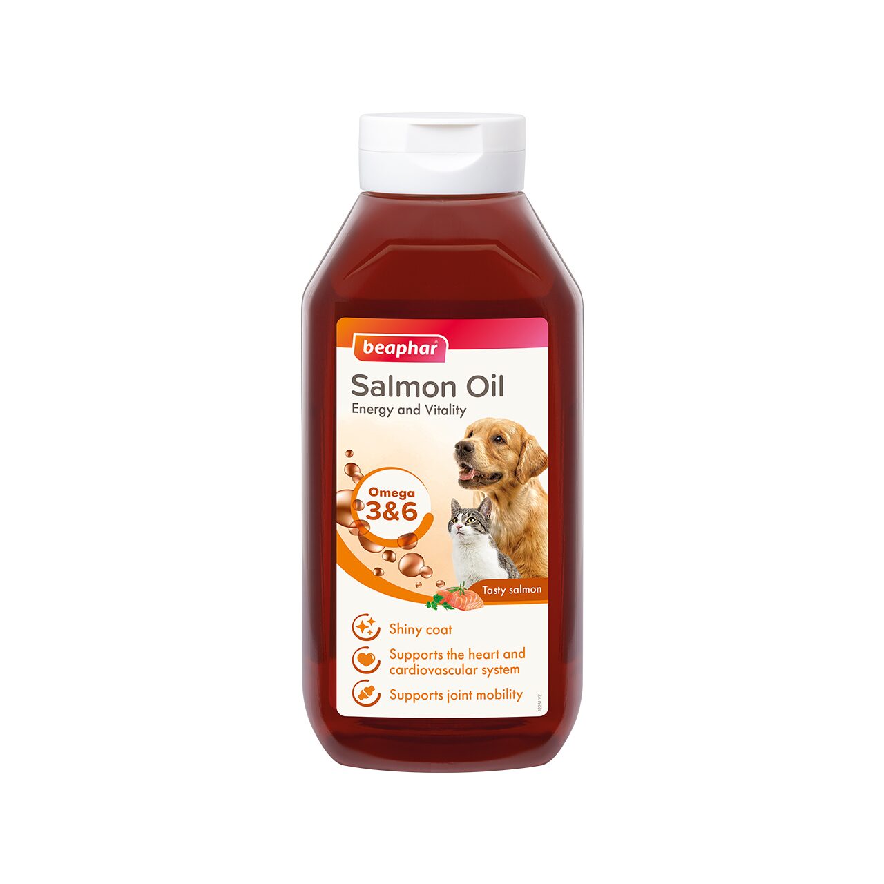 Uleiul de somon Beaphar oferă o sursă excelentă de energie pentru pisicile și câinii activi.