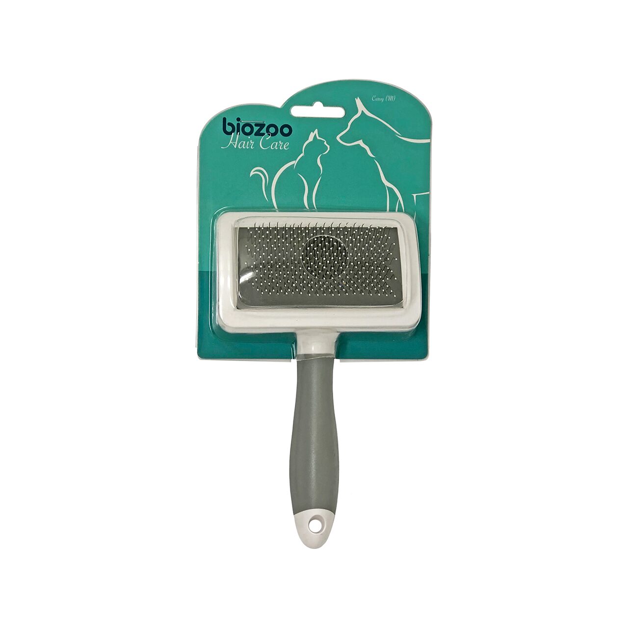 BIOZOO PERIE CURBATĂ CU DINȚI INOXIDABILI CÂINI ȘI PISICI M 18×10.5CM