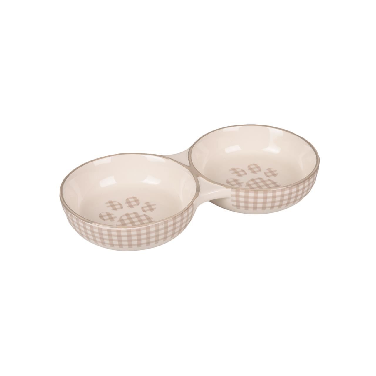 CASTRON DUBLU DIN CERAMICA PENTRU PISICI FLAMINGO MYLO ALB-CREM 2x11CMx145ML