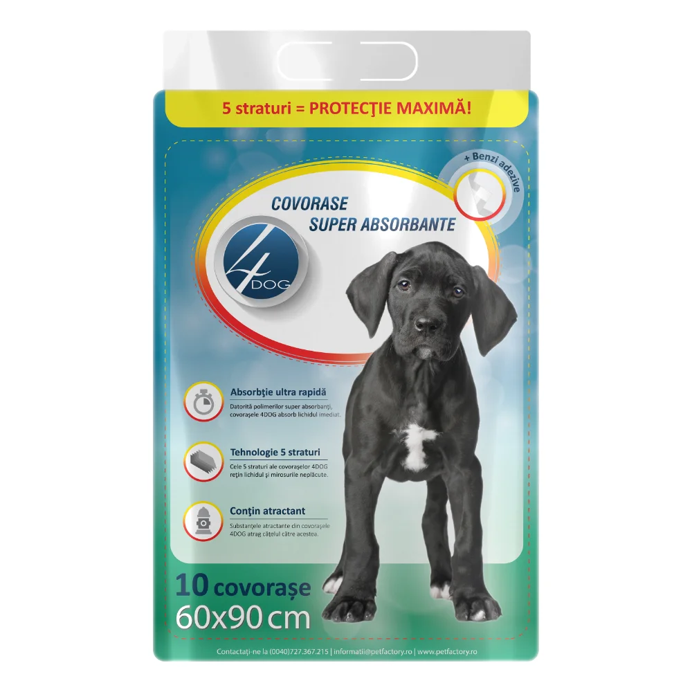 Covorase Igienice pentru Caine, 4DOG, 60x90cm, 10 bucati