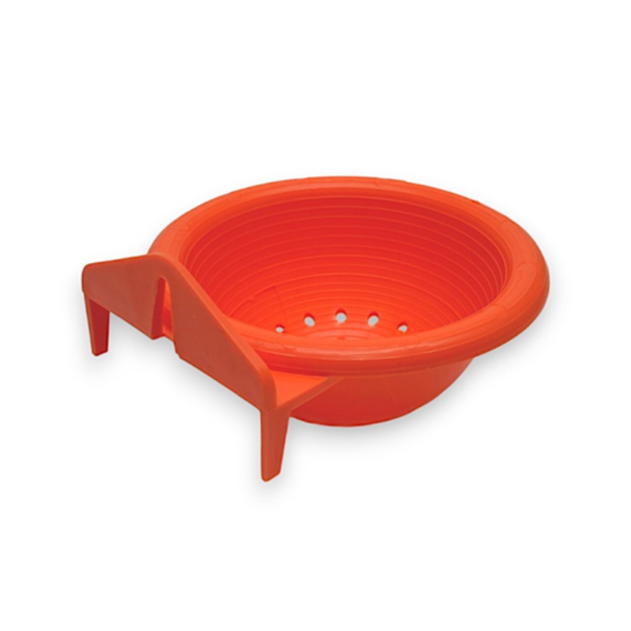 Cuib pentru păsări exotice confecționat din material plastic de culoare portocalie.