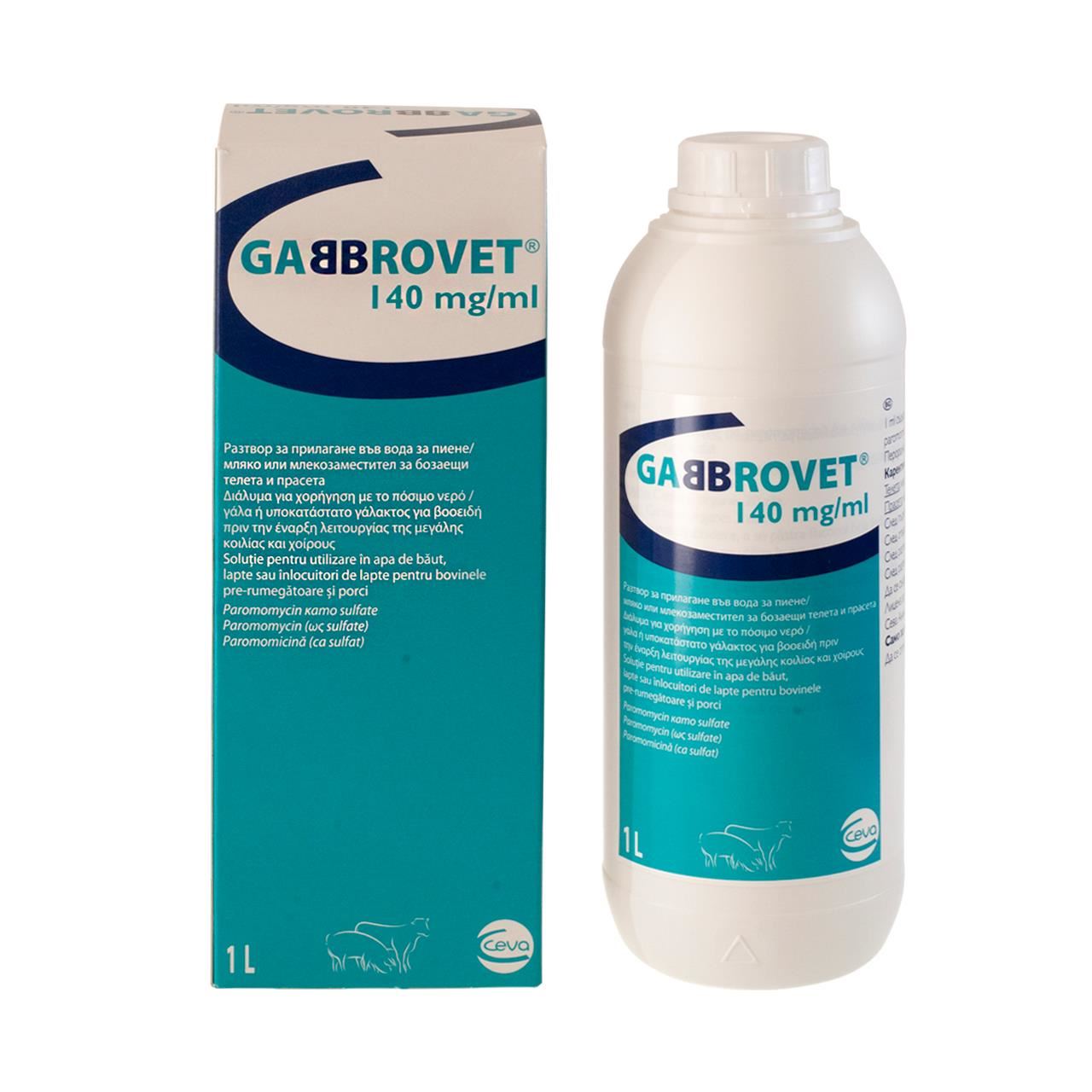 Gabbrovet 140 mg/ml solutie pentru utilizare in apa de baut, lapte, sau inlocuitori de lapte pentru bovinele pre-rumegatoare si porci.
