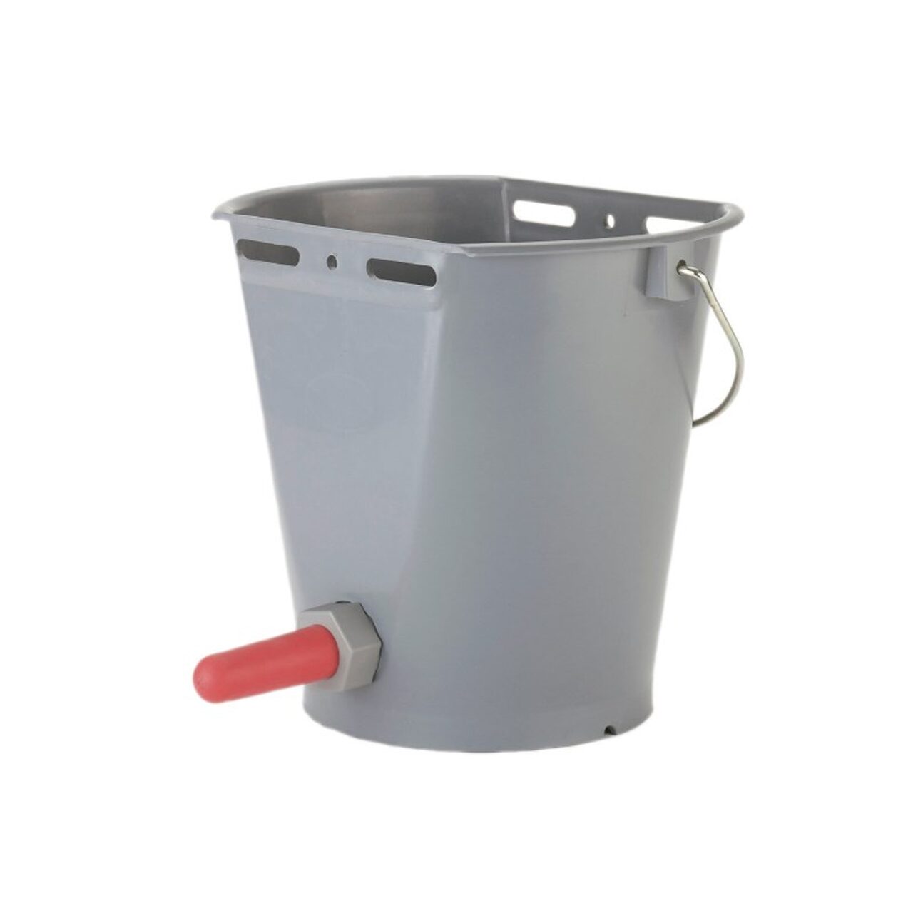 Găleată cu sistem de prindere, echipată complet cu tetină și supapă cu șurub.