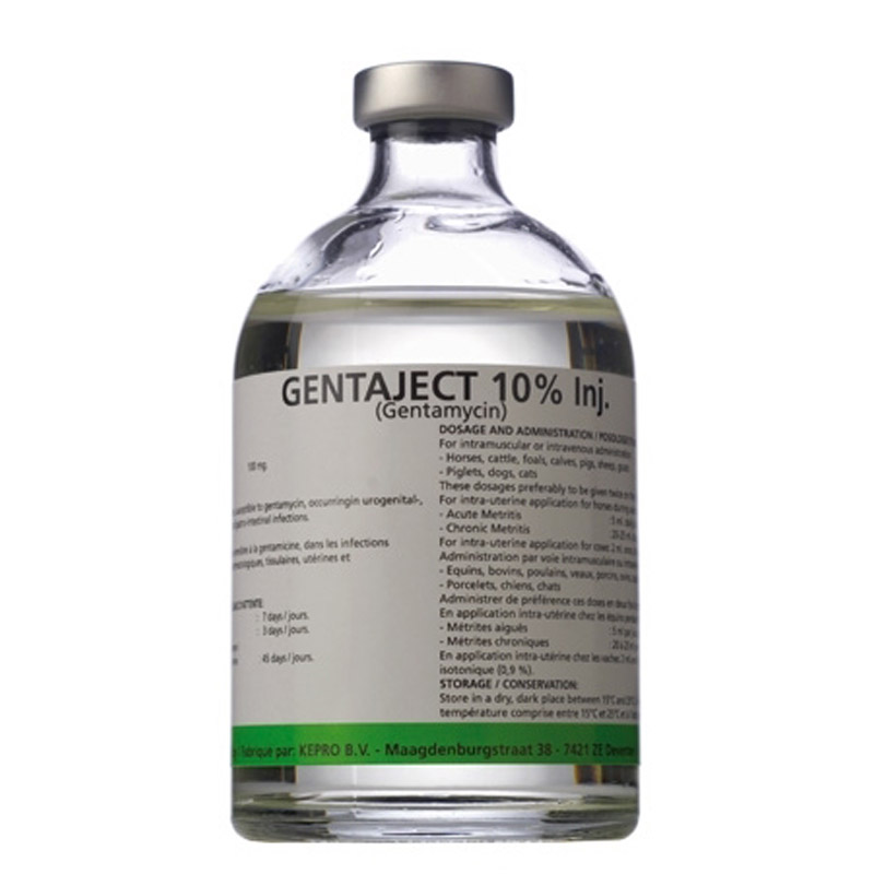 Gentamicina este un antibiotic apartinand grupului de aminoglicoside. Are activitate bactericida impotriva bacteriilor gram-pozitive si gram-negative (inclusiv: Pseudomonas spp, Enterobacter spp, Serratia spp, E. Coli, Proteus spp., Salmonella spp., Staphylococci).De asemenea este activ impotriva Campylobacter fetus subsp. jejuni si Treponema hyodysenteriae.