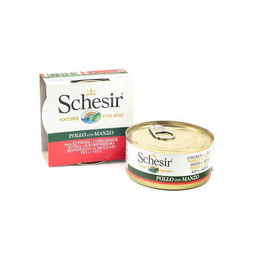 Hrana umeda pentru caini Schesir Adult cu pui si vita 150 g