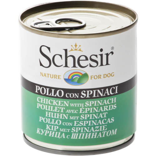 Hrana umeda pentru caini Schesir cu pui si spanac 285 g