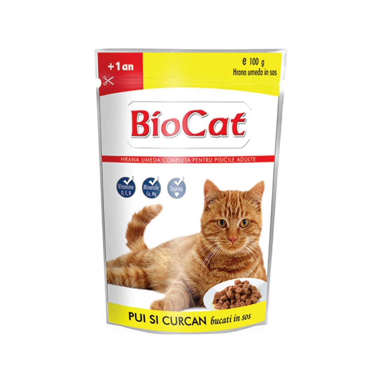 HRANĂ UMEDĂ PENTRU PISICI BIOCAT PLIC PUI&CURCAN ÎN SOS 100G