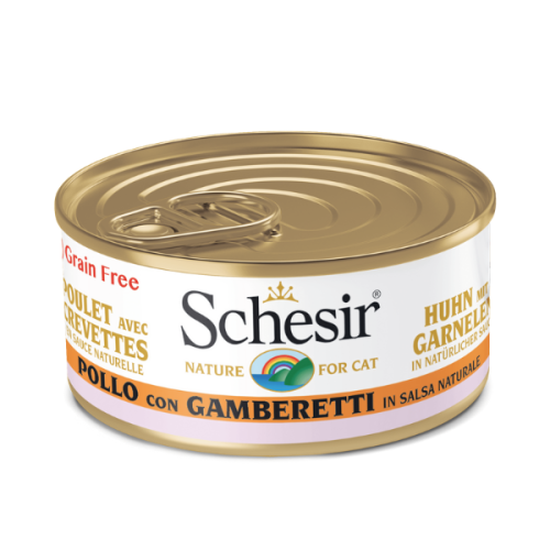 Hrana umeda pentru pisici Schesir cu Pui si Creveti in Suc Propriu 70gr