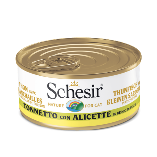 Hrana umeda pentru pisici Schesir in supa cu ton si pestisori 70 g