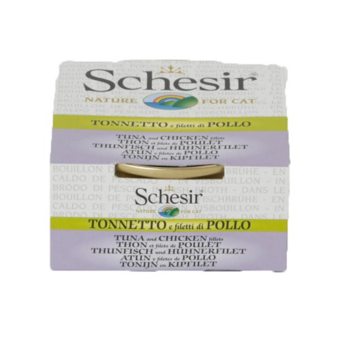 Hrana umeda pentru pisici Schesir in Supa Ton si Pui 70gr