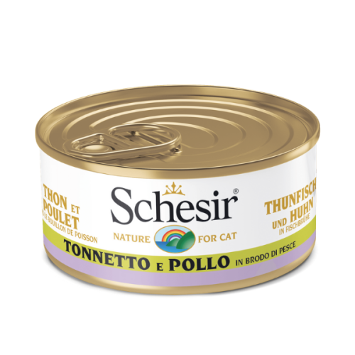 Hrana umeda pentru pisici Schesir in Supa Ton si Pui 70gr – Hrana umeda cu supa pentru pisici adulte este o hrana obtinuta exclusiv din ingrediente selectionate. Caracteristici si beneficii: Nu contine fainuri sau subproduse din carne Con..