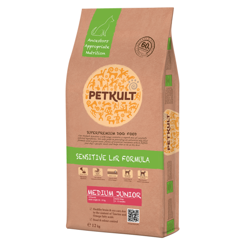 Hrana uscata pentru caini Petkult Sensitive Medium Junior cu miel si orez 12 kg