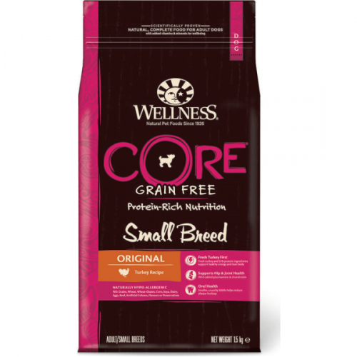 Hrana uscata pentru caini Wellness Core Small Breed Adult cu curcan 10 kg este potrivita pentru caini adulti de talie mica cu tendinta de ingrasare. Contine ingrediente de inalta calitate pentru a sustine sanatatea generala a cainelui si nu cont..