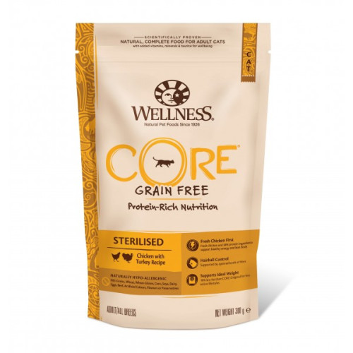 Hrana uscata pentru pisici Wellness Core Sterilised cu pui si curcan 300 g