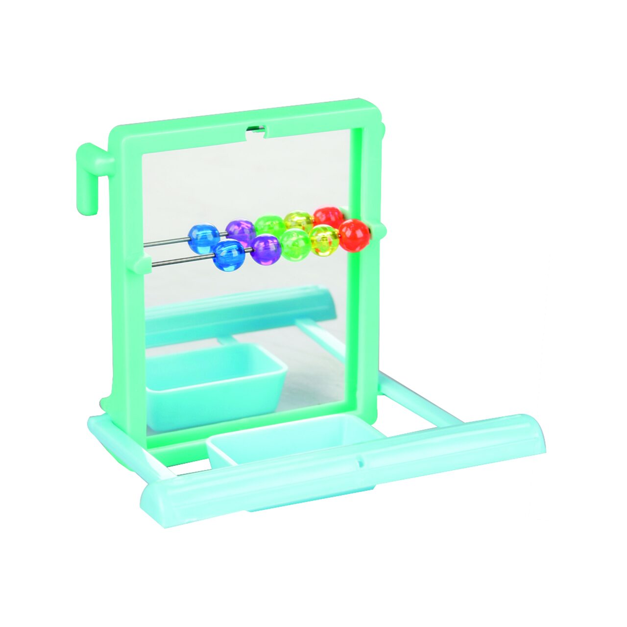 Oglindă viu colorată care va atrage imediat atenția păsărilor. În plus, este însoțită de un clopoțel care va multiplica bucuria. Ideală pentru peruși sau alte păsări de talie mică.