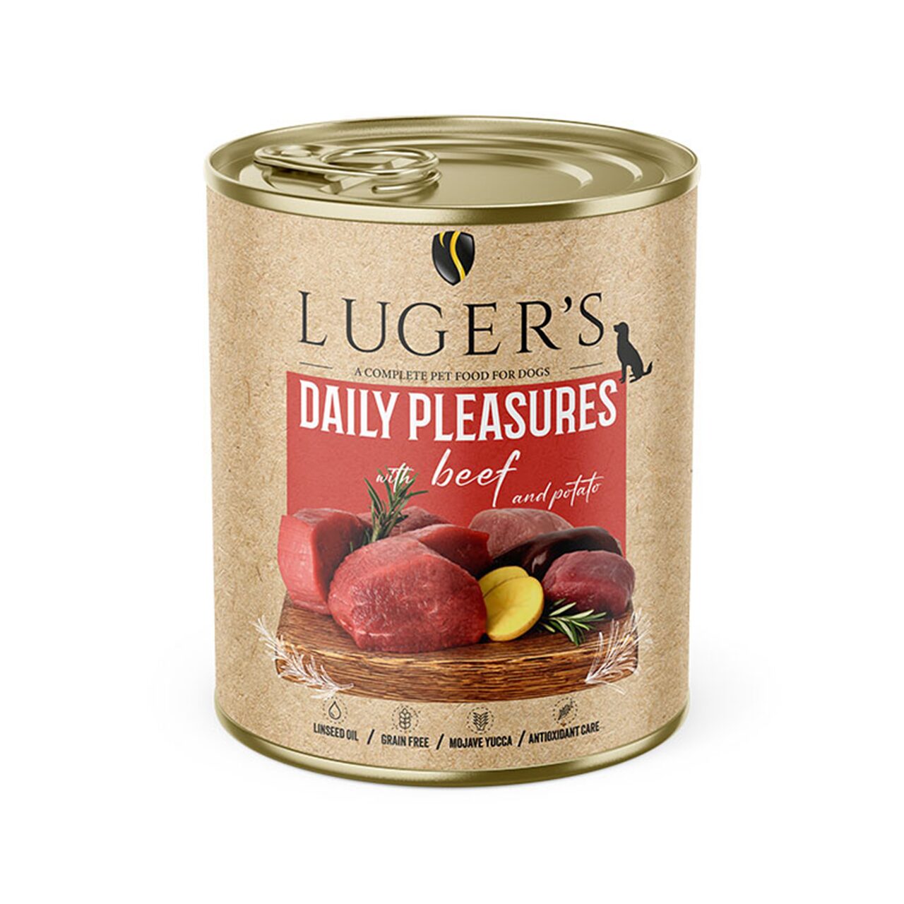 Linia de hrană umedă Luger's Daily Pleasures este un produs conceput pentru hrănirea zilnică a câinilor adulți de toate rasele. Compoziția și proporțiile selectate cu precizie ale materiilor prime individuale cu cea mai mare valoare nutritivă acoperă cererea pentru toți nutrienții, ținând cont de liniile directoare nutriționale moderne. Baza formulei alimentare este carnea și organele de înaltă calitate. Datorită acestui fapt, un câine adult primește cantitatea potrivită de proteine ​​de valoare completă, bogate în toți aminoacizii exogeni, grăsimi și, odată cu aceasta, acizii grași, atât saturați, cât și polinesaturați, și majoritatea componentelor vitaminelor și mineralelor. Adăugarea de legume asigură cantitatea necesară de carbohidrați, care garantează cursul corect al tuturor proceselor metabolice. Substanțele biologic active conținute în aditivi, precum sucul de sfeclă roșie pudră și rozmarinul, protejează împotriva efectelor negative ale stresului oxidativ și, influențând activitatea secretorie a tubului digestiv, reglează procesele digestive. Compoziția variată, prezența multor aditivi valoroși în formulă și metoda de producție asigură palatabilitatea ridicată a alimentelor Luger's Daily Pleasures.