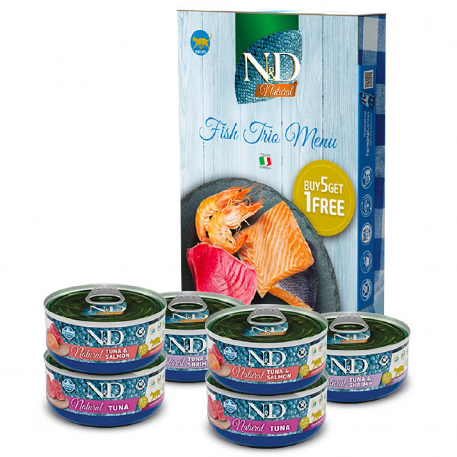 ND Natural Trio Menu, Hrana Umeda Pisica Adult, Peste, 6x70g , DELISTAT