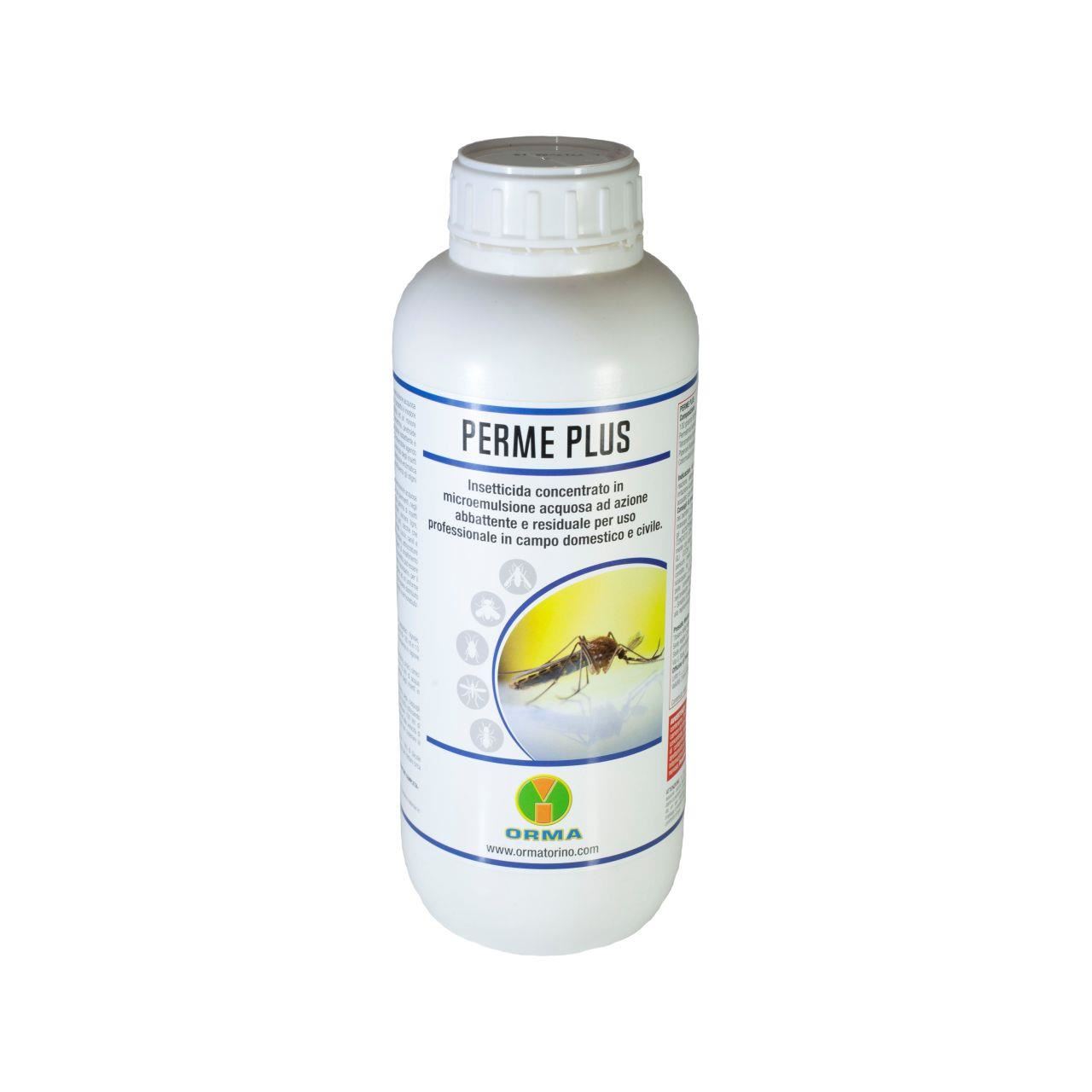 PERME PLUS este un insecticid concentrat cu acțiune de combatere și reziduală, care trebuie diluat în apă înainte de utilizare. Produsul este inodor și nu este inflamabil, garantând astfel o mai mare siguranță în timpul utilizării și având un impact mai redus asupra mediului. PERME PLUS este un insecticid format din Permetrină, un piretroid fotostabil cu acțiune reziduală și din Tetrametrină, un piretroid cu pronunțată acțiune de combatere și de scoatere din cuiburi. Asocierea acestor substanțe face ca insecticidul să aibă o acțiune rapidă și ireversibilă, acționând prin contact și prin ingerare și cauzând o alterare a sistemului nervos al insectelor țintă. Permetrina și Tetrametrina sunt sinergizate și protejate de degradarea enzimatică prin acțiunea Piperonil butoxidului, care facilitează de asemenea și penetrarea prin stigmatele insectelor.