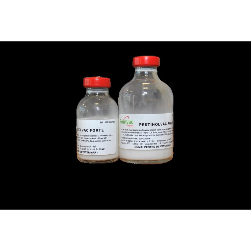 Doza vaccinală este de 0,3 ml indiferent de specia ţintă. Se recomandă administrarea subcutanată a vaccinului în treimea mijlocie a părţii dorsale a gâtului, cu vârful acului îndreptat spre corpul păsării vaccinate. Efectivele de păsări tineret şi adulte care nu au mai fost vaccinate cu Pestiholvac Forte vor fi vaccinate cu rapel (câte o doză de vaccin la interval de 21 zile), după care vor intra la revaccinările de întreţinere a imunităţii (din 4 în 4 luni).