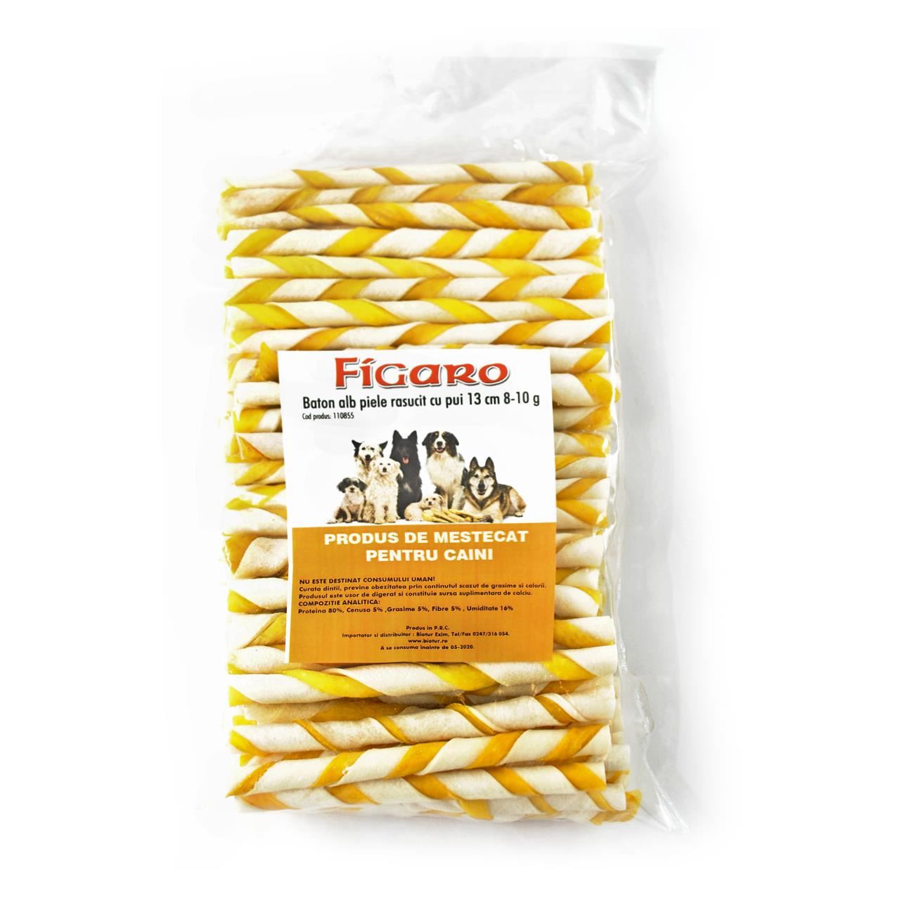 RECOMPENSE PENTRU CAINI BATON ALB PIELE RASUCIT CU PUI 13CM 8-10G (SET 100 BUC)
