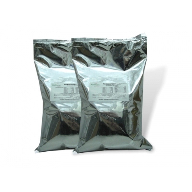 Se recomandă o omogenizare foarte bună a produsului cu furajul, amestecând cantitatea necesară de pulbere de Romzeofort, mai intâi cu o cantitate mică de furaj, apoi acesta se adaugă treptat până la încorporarea totală.