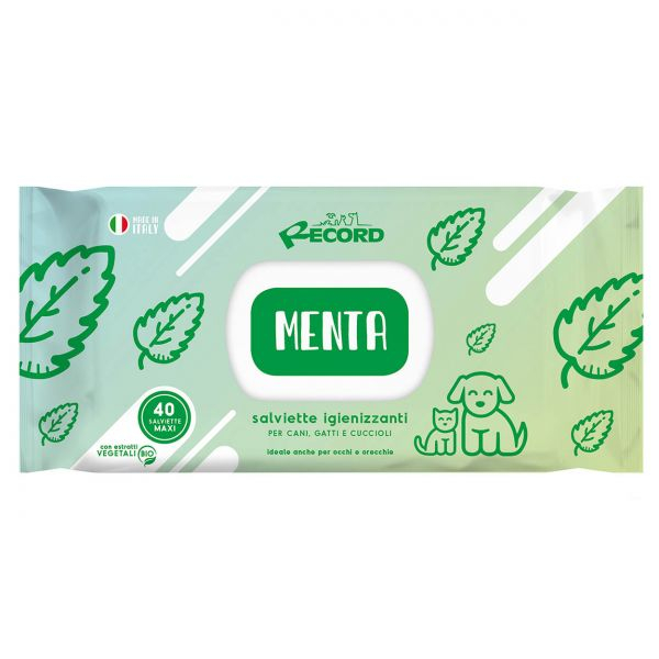 SERVETELE ANTIBACTERIENE RECORD CU MENTA 40buc sunt servetele umede pentru curatarea blanii cainilor si pisicilor. Cu parfum de menta, servetelele Record lasa blana moale, stralucitoare si frumos parfumata.